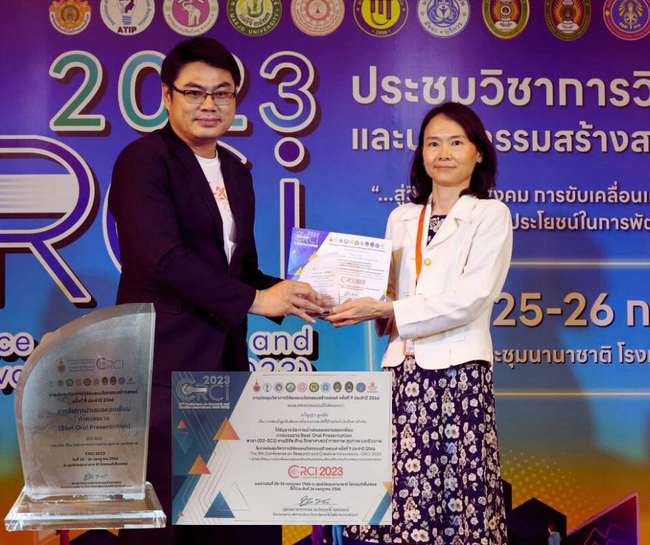 ผศ.ดริญญา มูลชัย ได้รับรางวัลนำเสนอผลงานยอดเยี่ยมภาคบรรยาย Best Oral Presentation ในสาขาด้านวิทยาศาสตร์ กายภาพ สุขภาพ และชีวภาพ