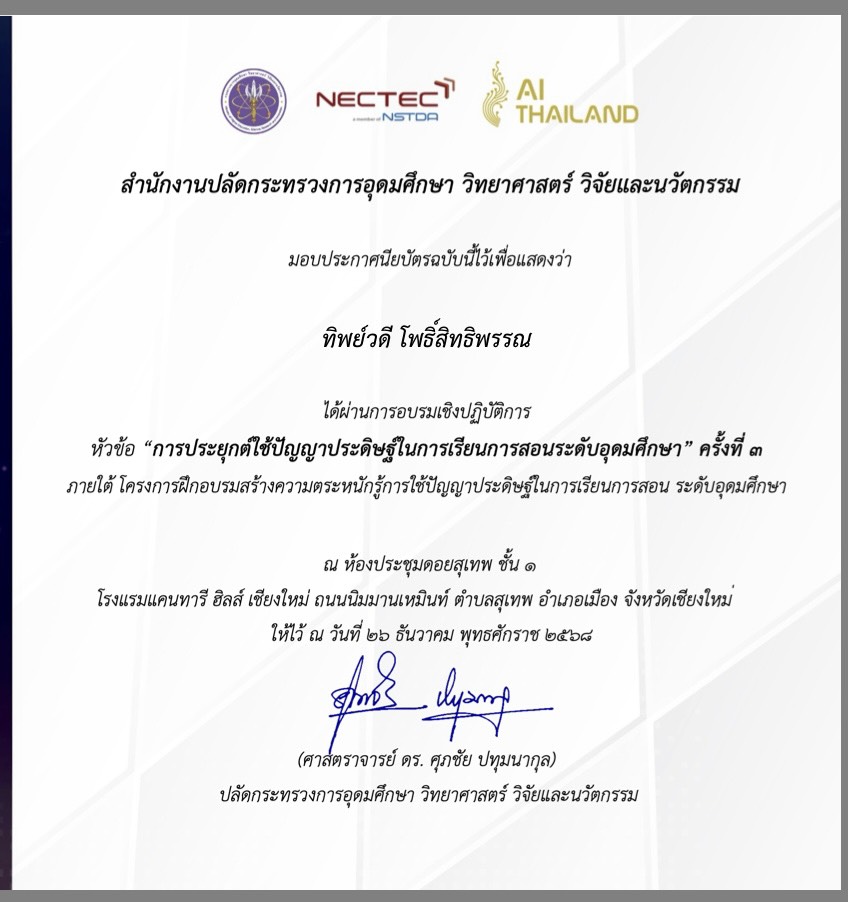การอบรมเชิงปฏิบัติการ หัวข้อ "การประยุกต์ใช้ปัญญาประดิษฐ์ในการเรียนการสอนระดับอุดมศึกษา" ครั้งที่ 3