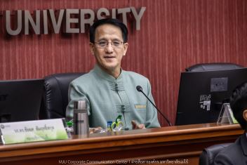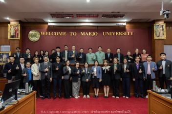 วันพฤหัสบดีที่ 4 กันยายน 2568 ผู้บริหารมหาวิทยลัยแม่โจ้ นำโดย รองศาสตราจารย์ ดร.เกรียงศักดิ์ ศรีเงินยวง รองอธิการบดี, รองศาสตราจารย์ ดร.ชัยยศ สัมฤทธิ์สกุล รองอธิการบดี, นางอรทัย ใจป้อ รองประธานสภาพนักงานมหาวิทยาลัยแม่โจ้ พร้อมด้วยผู้บริหารและบุคลากรสำนักวิจัยและส่งเสริมวิชาการการเกษตร , สำนักบริหารและพัฒนาวิชาการ และบุคลากรที่เกี่ยวข้อง ร่วมให้การต้อนรับ รองศาสตราจารย์พิชัย จันทร์มณี อธิการบดีมหาวิทยาลัยเทคโนโลยีราชมงคลกรุงเทพ พร้อมด้วย นายภูมิภวิชญ์ ทิพย์ธีรเศวต ประธานสภาคณาจารย์และข้าราชการ ในโอกาสนำคณะผู้บริหาร กรรมการสภาคณาจารย์และข้าราชการ ของมหาวิทยาลัยเทคโนโลยีราชมงคลกรุงเทพ เข้าศึกษาดูงานด้านการรับสมัครนักศึกษาของมหาวิทยาลัยแม่โจ้ และกระบวนการวิจัยและบริการวิชาการ ของมหาวิทยาลัยแม่โจ้ เพื่อร่วมแลกเปลี่ยนเรียนรู้ในการพัฒนาศักยภาพผู้บริหารมหาวิทยาลัยและบุคลากรสภาคณาจารย์และข้าราชการ อีกทั้งยังเป็นการสร้างเครือข่ายความร่วมมือระหว่างสถาบันการศึกษา ณ ห้องประชุมสภามหาวิทยาลัย ชั้น 5 สำนักงานมหาวิทยาลัย มหาวิทยาลัยแม่โจ้