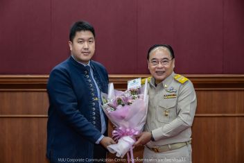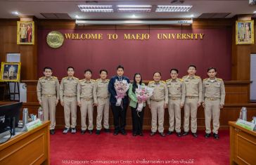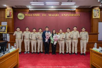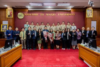 วันที่ 22 ตุลาคม 2568 รองศาสตราจารย์ ดร.วีระพล ทองมา อธิการบดีมหาวิทยาลัยแม่โจ้ มอบช่อดอกไม้แสดงความยินดี แก่ ผู้ช่วยศาสตราจารย์ ดร.ทองเลียน บัวจูม ในโอกาสได้รับแต่งตั้งให้ดำรงตำแหน่ง คณบดีคณะสัตวศาสตร์และเทคโนโลยี และ อาจารย์ ดร.พิชญ์ จิตต์ภักดี ในโอกาสได้รับแต่งตั้งให้ดำรงตำแหน่ง คณบดีวิทยาลัยบริหารศาสตร์ ซึ่งจะเป็นทีมผู้บริหารร่วมขับเคลื่อนมหาวิทยาลัยต่อไป โอกาสนี้ มีคณะผู้บริหารมหาวิทยาลัยร่วมแสดงความยินดี ณ ห้องประชุมสภามหาวิทยาลัย ชั้น 5 สำนักงานมหาวิทยาลัย มหาวิทยาลัยแม่โจ้