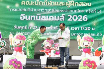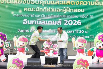 วันศุกร์ที่ 27 กุมภาพันธ์ 2569 มหาวิทยาลัยแม่โจ้ จัดงานเลี้ยงขอบคุณและแสดงความยินดี แก่คณะนักกีฬาและผู้ฝึกสอนของมหาวิทยาลัยแม่โจ้ ในการทำหน้าที่ตัวแทนมหาวิทยาลัยเข้าร่วมการแข่งขัน และสร้างผลงาน ในกีฬามหาวิทยาลัยแห่งประเทศไทย ครั้งที่ 51 “อินทนิลเกมส์ 2026” ซึ่งมหาวิทยาลัยแม่โจ้ เป็นเจ้าภาพจัดการแข่งขัน เมื่อวันที่ 9-19 มกราคม 2569 ที่ผ่านมา