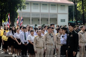วันจันทร์ที่ 29 กันยายน 2568 รองศาสตราจารย์ ดร.วีระพล ทองมา อธิการบดีมหาวิทยาลัยแม่โจ้ นำคณะผู้บริหาร คณาจารย์ บุคลากร และนักศึกษา เคารพธงชาติและร้องเพลงชาติไทย เนื่องในวันพระราชทานธงชาติไทย (Thai National Flag Day) เพื่อเป็นการสร้างความภาคภูมิใจของคนในชาติ และเป็นการน้อมรำลึกในพระมหากรุณาธิคุณพระบาทสมเด็จพระมงกุฎเกล้าเจ้าอยู่หัวที่ทรงพระราชทานธงไตรรงค์เป็นธงชาติไทย ณ เสาธงหน้าพระพิรุณทรงนาค มหาวิทยาลัยแม่โจ้ จ.เชียงใหม่ และ มหาวิทยาลัยแม่โจ้ - แพร่ เฉลิมพระเกียรติ จ.แพร่ วันพระราชทานธงชาติไทย (Thai National Flag Day) เป็นวันที่ระลึกถึงโอกาสที่พระบาทสมเด็จพระมงกุฎเกล้าเจ้าอยู่หัว รัชกาลที่ 6 ทรงพระกรุณาโปรดเกล้าฯ ประกาศพระราชบัญญัติแก้ไขพระราชบัญญัติธง พุทธศักราช 2460 โดยมีสาระสำคัญคือ การประกาศให้ธงไตรรงค์เป็นธงชาติไทยสืบต่อมาจนถึงปัจจุบัน ซึ่งได้มีการประกาศไว้ ณ วันที่ 28 กันยายน พ.ศ. 2460 พระองค์ทรงกำหนดความหมายของสีธงชาติไว้ว่า สีแดง หมายถึง ชาติ คือประชาชน สีขาว หมายถึง ศาสนา และสีน้ำเงิน หมายถึง พระมหากษัตริย์ ซึ่งธงไตรรงค์ หรือธงชาติไทย ถือเป็นสัญลักษณ์อันสูงสุดของชาติ เป็นสิ่งเตือนใจให้อนุชนได้รำลึกถึงการเสียสละเลือดเนื้อของบรรพบุรุษ เพื่อรักษาไว้ซึ่งแผ่นดิน และร้อยดวงใจคนทั้งชาติให้เป็นหนึ่ง หล่อหลอมความรักสามัคคี สร้างเสริมความภูมิใจในความเป็นชาติ ก่อเกิดเป็นพลังยิ่งใหญ่ในการพัฒนาชาติไทย