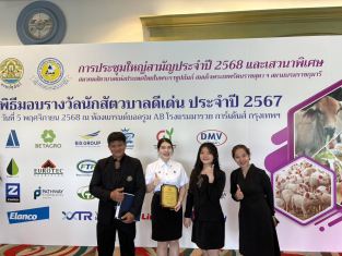 เมื่อวันที่ 5 พฤศจิกายน 2568 นางสาวญาณิศามน กันถาด มหาวิทยาลัยแม่โจ้-แพร่ เฉลิมพระเกียรติ เข้ารับโล่รางวัล “รางวัลยุวสัตวบาลดีเด่น ประจำปี 2567” จากสมาคมสัตวบาลแห่งประเทศไทย ในพระราชูปถัมภ์ สมเด็จพระเทพรัตนราชสุดาฯ สยามบรมราชกุมารี โดยมี ดร.จรัลธาดา กรรณสูต องคมนตรี ประธานในพิธีมอบรางวัล ณ โรงแรมมารวยการ์เด้น กรุงเทพมหานคร สำหรับรางวัลยุวสัตวบาลดีเด่น เป็นรางวัลที่มอบให้แก่นิสิตนักศึกษาที่มีความรู้ ความสามารถ และมีผลงานโดดเด่นด้านวิชาการและวิชาชีพสัตวบาล รวมถึงมีจิตอาสาและคุณธรรมจริยธรรมอันเหมาะสม ถือเป็นรางวัลเกียรติยศอันทรงคุณค่าและเป็นกำลังใจสำคัญให้กับเยาวชนในสายวิชาชีพสัตวบาล นางสาวญาณิศามน กันถาด ลูกแม่โจ้รุ่นที่ 87 เป็นนักศึกษาชั้นปีที่ 4 หลักสูตรวิทยาศาสตรบัณฑิต สาขาเทคโนโลยีการผลิตสัตว์ ซึ่งเป็นผู้มีผลการเรียนดี กิจกรรมเด่น มีความประพฤติดี มีความมุ่งมั่นในการวิจัยและ พัฒนาวิชาการด้านสัตวบาล เคยได้รับรางวัลการนำเสนอ ระดับยอดเยี่ยม ในการประชุมวิชาการทางด้านสัตวศาสตร์ระดับนานาชาติ ณ ไต้หวัน นอกจากนั้นยังทำกิจกรรมต่างๆ เพื่อประโยชน์ต่อสังคม/องค์กร อีกมากมาย เคยดำรงตำแหน่ง นายกองค์การนักศึกษามหาวิทยาลัยแม่โจ้ - แพร่ เฉลิมพระเกียรติ ประจำปี 2567 และยังได้รับการคัดเลือกเป็นประธานเครือข่าย นักศึกษาสิงห์อาสาภาคเหนือ อีกด้วย ซึ่งนางสาวญานิศา กันถาด มีเป้าหมายในชีวิตว่า อยากศึกษาต่อในด้านปศุสัตว์และประกอบกิจการเกี่ยวกับศูนย์วิจัยเพื่อการพัฒนาพันธุ์และอาหารสัตว์ หวังว่าจะมีส่วนร่วมพัฒนาให้อุตสาหกรรมปศุสัตว์ไทยมีคุณภาพมากยิ่งขึ้นในอนาคต ด้านช่วยศาสตราจารย์ ดร.รัฐพงศ์ ปกแก้ว คณบดีมหาวิทยาลัยแม่โจ้-แพร่ เฉลิมพระเกียรติ กล่าวเพิ่มเติมว่า “ขอแสดงความยินดีกับนักศึกษาที่ได้รับรางวัลในครั้งนี้ ซึ่งเป็นรางวัลจากความมุ่งมั่นตั้งใจ ถือเป็นแบบอย่างที่ดีของลูกแม่โจ้สะท้อนถึงคุณภาพของการเรียนการสอนและการปลูกฝังอุดมการณ์เกษตรของมหาวิทยาลัย ที่มุ่งเน้นการสร้างบัณฑิตให้มีทั้งความรู้ คุณธรรม และจิตสำนึกในการพัฒนาเกษตรกรรมไทยอย่างยั่งยืน”