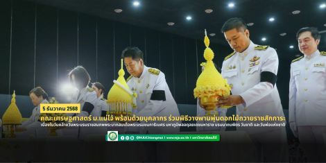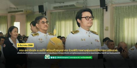 เมื่อวันที่ 5 ธันวาคม 2568 มหาวิทยาลัยแม่โจ้ เข้าร่วม กิจกรรมเนื่องใน วันคล้ายวันพระบรมราชสมภพ พระบาทสมเด็จพระบรมชนกาธิเบศร มหาภูมิพลอดุลยเดชมหาราช บรมนาถบพิตร วันชาติ และวันพ่อแห่งชาติ ณ หอประชุมอำเภอสันทราย จังหวัดเชียงใหม่โดยได้ มอบหมายให้ อาจารย์ ดร.โชคอนันต์ วาณิชย์เลิศธนาสาร คณบดีคณะสถาปัตยกรรมศาสตร์และการออกแบบสิ่งแวดล้อม พร้อมด้วยปัญญวัจน์ ชลวิชิต ผู้อำนวยการสำนักงานคณบดี และนายสุรพล บุญยืน หัวหน้างานคลังและพัสดุ เป็นผู้แทน เข้าร่วมกิจกรรมดังกล่าวเพื่อแสดงความจงรักภักดีและรำลึกถึงพระมหากรุณาธิคุณของในหลวงรัชกาลที่ 9