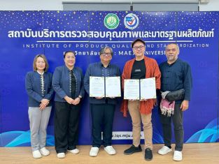สถาบันบริการตรวจสอบคุณภาพและมาตรฐานผลิตภัณฑ์ (IQS) มหาวิทยาลัยแม่โจ้ ได้จัดพิธีลงนาม บันทึกความเข้าใจความร่วมมือทางวิชาการ (MOU) ระหว่าง มหาวิทยาลัยแม่โจ้ (สถาบันบริการตรวจสอบคุณภาพและมาตรฐานผลิตภัณฑ์) กับ สมาคมการค้าโกโก้และช็อกโกแลตไทย (Thai Association of Cocoa and Chocolate Trade : TACCO) เพื่อส่งเสริมความร่วมมือด้านวิชาการ การวิจัย การพัฒนาคุณภาพผลิตภัณฑ์ และการยกระดับอุตสาหกรรมโกโก้และช็อกโกแลตของประเทศไทยอย่างยั่งยืน คณะผู้บริหารและบุคลากร IQS ที่เข้าร่วมพิธี นำโดย ผู้ช่วยศาสตราจารย์ ดร.ตะวัน ฉัตรสูงเนิน ผู้อำนวยการสถาบัน ผู้ช่วยศาสตราจารย์ ดร.ฉันทนา ซูแสวงทรัพย์ รองผู้อำนวยการฝ่ายวิจัยและนวัตกรรม นางริมฤทัย พุทธวงค์รองผู้อำนวยการฝ่ายบริหารและห้องปฏิบัติการ นางสาวผริตา วงศ์ไชยลึกหัวหน้าฝ่ายสำนักงานเลขานุการ นายพัฒน์ โกจินอก หัวหน้าฝ่ายพัฒนาและส่งเสริมปัจจัยการผลิต นายวรินทร โภคารัตน์ หัวหน้าฝ่ายที่ปรึกษาและโครงการพิเศษ ในโอกาสนี้ IQS ได้ให้การต้อนรับคณะผู้แทนจากสมาคมการค้าโกโก้และช็อกโกแลตไทย (TACCO) ได้แก่ นายบดินทร์ เจริญพงศ์ชัย นายกสมาคมการค้าโกโก้และช็อกโกแลตไทย นายปฐม มีแก้ว อุปนายกฝ่ายวิชาการ สมาคมการค้าโกโก้และช็อกโกแลตไทย พร้อมด้วยทีมงานพร้อม ความร่วมมือดังกล่าวมุ่งเน้นการบูรณาการองค์ความรู้ทางวิชาการ วิทยาศาสตร์ เทคโนโลยี และมาตรฐานการตรวจสอบคุณภาพ เพื่อสนับสนุนการพัฒนาโกโก้และช็อกโกแลตไทยตั้งแต่ต้นน้ำถึงปลายน้ำ อันจะช่วยเพิ่มขีดความสามารถในการแข่งขันของผู้ประกอบการ และสร้างมูลค่าเพิ่มให้กับอุตสาหกรรมเกษตรและอาหารของประเทศ ทั้งนี้ แผนงานดำเนินงานไปดำเนินการใน 2 หัวข้อ ภายในปี 2569 ได้แก่ - พัฒนาศูนย์ตรวจสอบคุณภาพและมาตรฐานเมล็ดโกโก้แห้ง - หลักสูตรนวัตกรรมโกโก้และช็อคโกแลตคุณภาพ