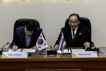วันพฤหัสบดีที่ 5 กุมภาพันธ์ 2569 รองศาสตราจารย์ ดร.วีระพล ทองมา อธิการบดี มหาวิทยาลัยแม่โจ้ พร้อมผู้บริหารจาก วิทยาลัยนานาชาติ วิทยาลัยพลังงานทดแทน คณะศิลปศาสตร์ คณะบริหารธุรกิจ คณะวิศวกรรมและอุตสาหกรรมเกษตร ให้การต้อนรับ Dr. Hae Woo Lee อธิการบดี พร้อมคณะ จาก Dong-A University ประเทศเกาหลีใต้ ในโอกาสเดินทางมาหารือความร่วมมือทางวิชาการ และร่วมลงนามบันทึกความเข้าใจ (Memorandum of Understanding: MOU) ความร่วมมือทางวิชาการและการพัฒนาศักยภาพในด้านต่างๆ ร่วมกันระหว่างสองสถาบัน ณ ห้องรวงผึ้ง (สนม.5) ชั้น 5 อาคารสำนักงานมหาวิทยาลัย ภายหลังการลงนามบันทึกความเข้าใจแล้ว บุคคลคณะดังกล่าว ได้เข้าเยี่ยมชม Bio Hydrogen Center วิทยาลัยพลังงานทดแทน เพื่อแลกเปลี่ยนองค์ความรู้และแนวทางการพัฒนาด้านพลังงานและเทคโนโลยี โดยมีผู้ช่วยศาสตราจารย์ ดร.ยิ่งรักษ์ อรรถเวชกุล รองคณบดีฝ่ายวิจัยและบริการวิชาการ และรองศาสตราจารย์ ดร. Rameshprabu Ramaraj ผู้ช่วยคณบดีวิทยาลัยพลังงานทดแทน ให้การต้อนรับและนำชมสถานที่
