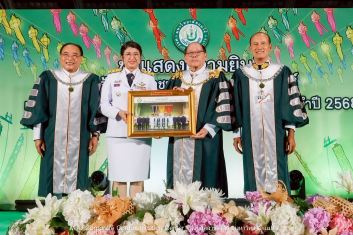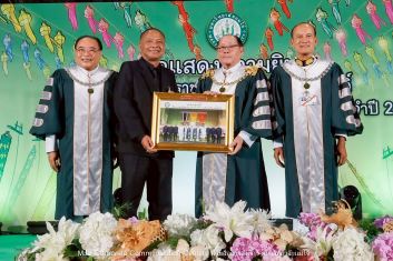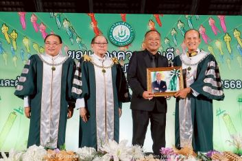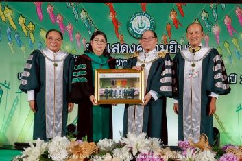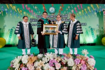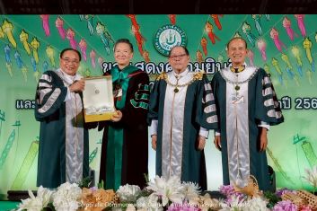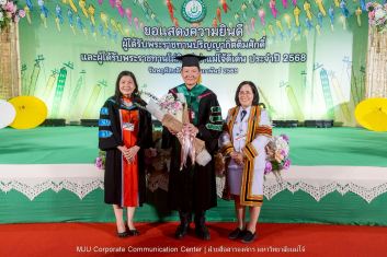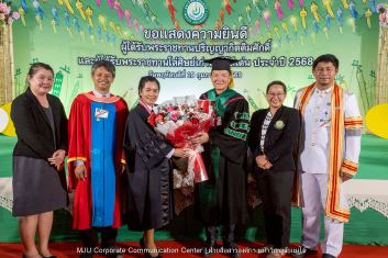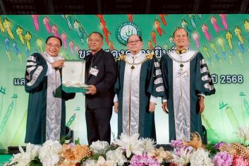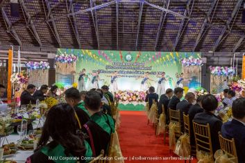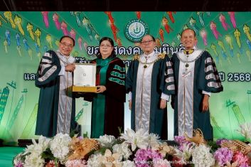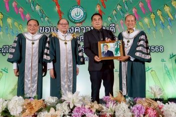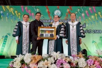 วันพฤหัสบดีที่ 19 กุมภาพันธ์ 2569 มหาวิทยาลัยแม่โจ้จัดงานแสดงความยินดีแก่ผู้ได้รับปริญญาดุษฎีบัณฑิตกิตติมศักดิ์ และศิษย์เก่าแม่โจ้ดีเด่น ประจำปี 2568 โดยได้รับเกียรติจาก รศ.ดร.เทพ พงษ์พานิช นายกสภามหาวิทยาลัยแม่โจ้ รองศาสตราจารย์ ดร.วีระพล ทองมา อธิการบดีมหาวิทยาลัยแม่โจ้ และ ดร.ขุนศรี ทองย้อย นายกสมาคมศิษย์เก่าแม่โจ้ ร่วมมอบของที่ระลึก และกล่าวแสดงความยินดี โอกาสนี้ นายก้องเทวัญ โชติเทวัญ ประธานสายโรงงานแปรรูปการผลิตและโรงงานอาหารสำเร็จรูป บริษัท สหฟาร์ม จำกัด เป็นผู้แทนผู้ได้รับปริญญากิตติมศักดิ์ และ นางฐิติพร หลาวประเสริฐ ศิษย์เก่าแม่โจ้ รุ่นที่ 52 อธิบดีกรมประมง เป็นผู้แทนผู้ได้รับพระราชทานโล่ศิษย์เก่าแม่โจ้ ดีเด่น กล่าวแสดงความรู้สึกและขอบคุณมหาวิทยาลัยแม่โจ้ โดยมี คณะผู้บริหาร ผู้ทรงคุณวุฒิ ร่วมแสดงความยินดี ซึ่งบรรยากาศเป็นไปด้วยความอบอุ่นประทับใจ ณ อาคารแผ่พืชน์ มหาวิทยาลัยแม่โจ้