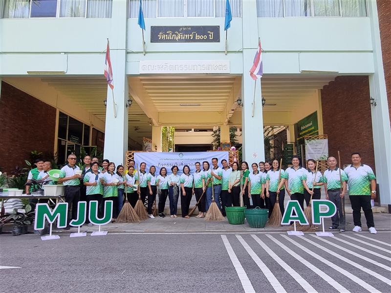 กิจกรรมที่ 2 การปรับสภาพภูมิทัศน์อาคารภายในหน่วยงานคณะผลิตกรรมการเกษตร ในวันที่ 5 มิถุนายน 2567 โดยมีผู้เข้าร่วมจำนวน 85 คน