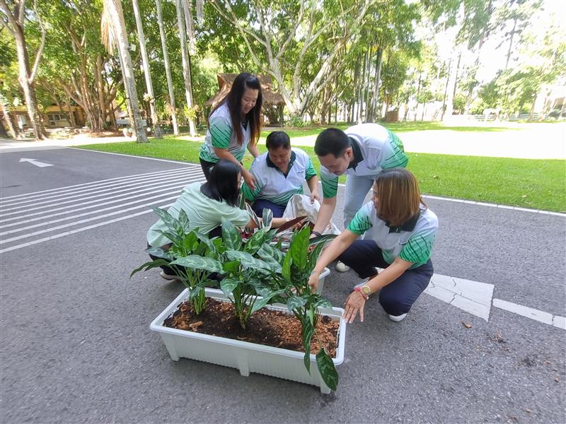 ได้ดำเนินการให้บุคลากร นักศึกษา และผู้สนใจ ได้สัมผัส ได้เรียนรู้ และมีสวนร่วมในการปรับปรุงภูมิทัศน์และสิ่งแวดล้อม รวมถึงการนำมาปรับใช้ในชีวิตประจำวัน