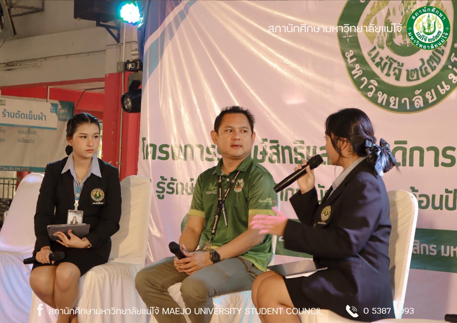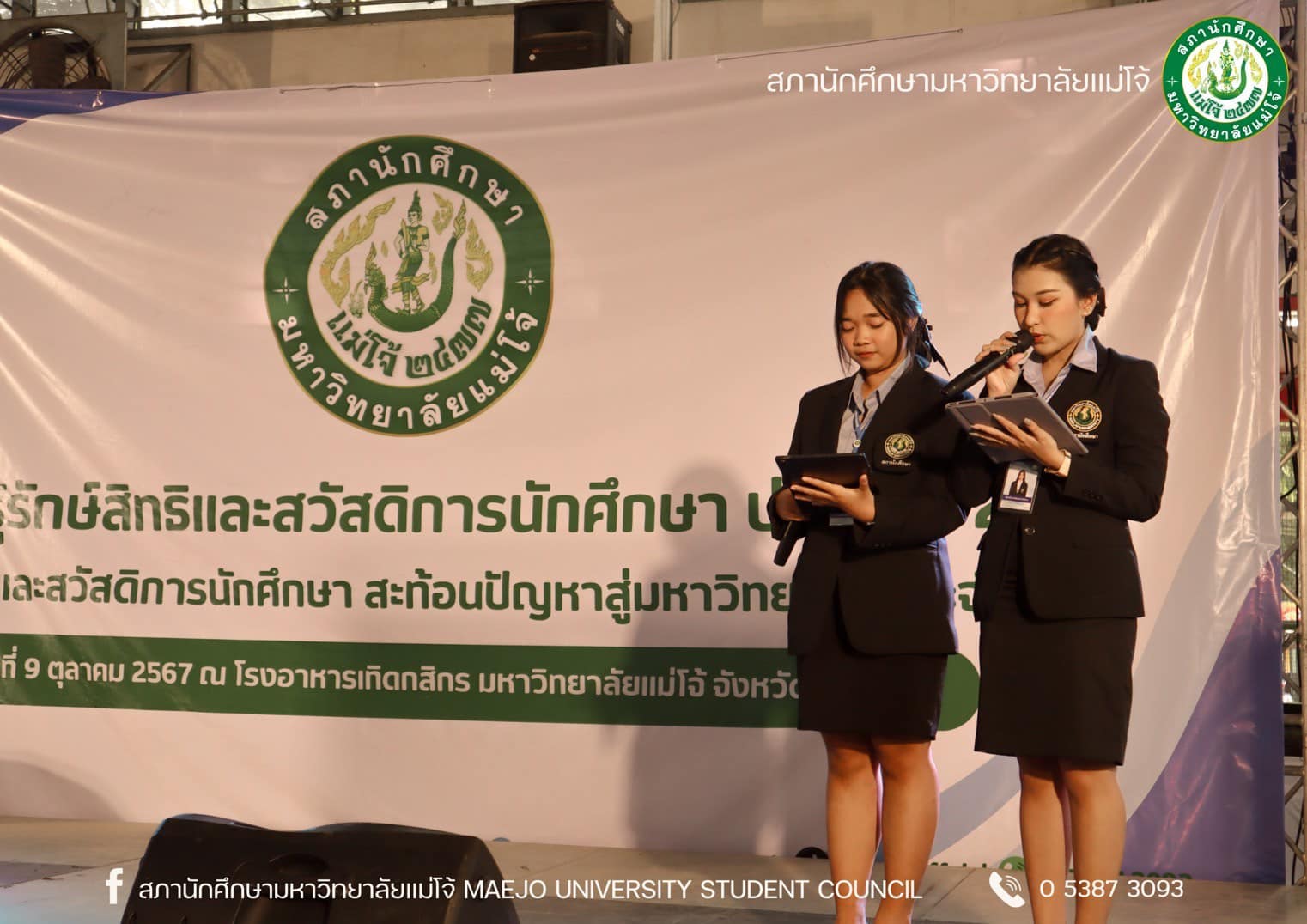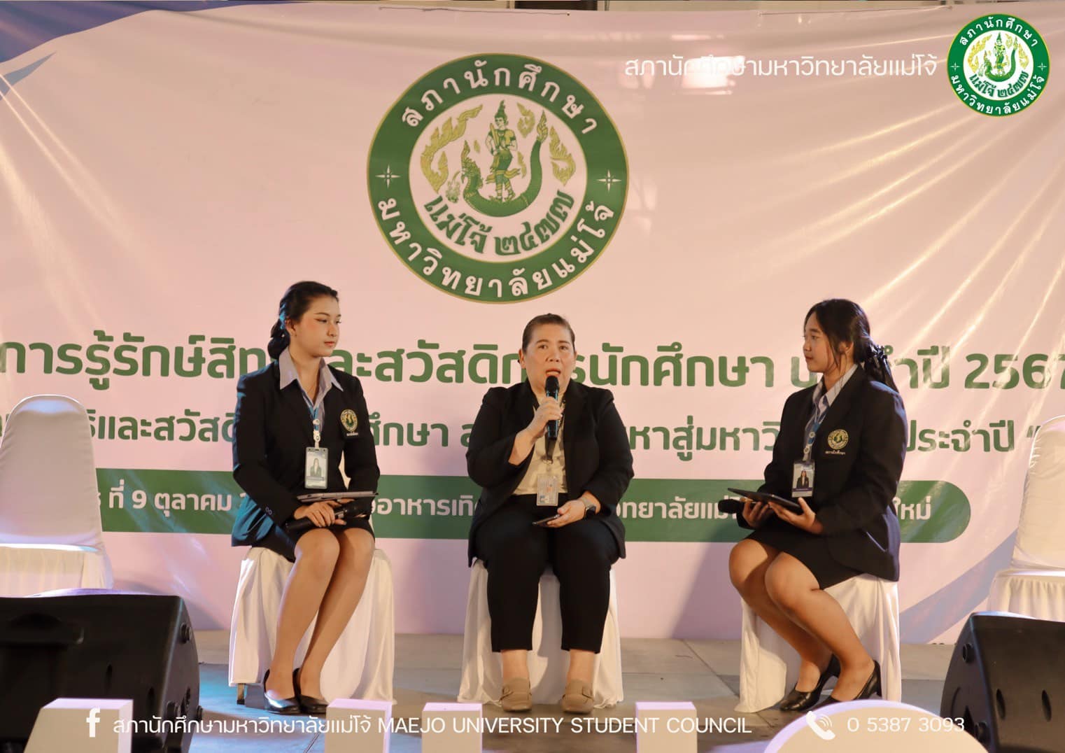 สภานักศึกษา มหาวิทยาลัยแม่โจ้ จัดกิจกรรมโครงการรู้รักสิทธิ์และสวัสดิการนักศึกษา ประจำปี 2567 ในวันที่ 9 ตุลาคม 2567 ณ โรงอาหารเทิดกสิกร มหาวิทยาลัยแม่โจ้ จังหวัดเชียงใหม่ โดยจัดกิจกรรมในลักษณะเวทีเสวนาร่วมกับหน่วยงานต่าง ๆ ภายในมหาวิทยาลัย ซึ่งมีเนื้อหาการเสวนาประกอบด้วยการให้ความรู้เรื่องสิทธิและสวัสดิการที่นักศึกษาควรจะได้รับจากมหาวิทยาลัย อาทิ สวัสดิการเกี่ยวกับห้องสมุด สวัสดิการหอพัก สวัสดิการที่เกี่ยวกับสุขภาวะ เป็นต้น และการเสวนาประเด็นปัญหาต่าง ๆ ที่เกิดขึ้นจนส่งผลกระทบต่อนักศึกษา รวมถึงให้หน่วยงานที่เกี่ยวข้องได้ตอบข้อซักถามจากนักศึกษา พร้อมทั้งแลกเปลี่ยนความคิดเกี่ยวกับแนวทางแก้ไขปัญหาที่เกิดขึ้น ซึ่งกิจกรรมเสวนาแบ่งออกเป็น 3 ช่วง ได้แก่ ช่วงที่ 1 หัวข้อเสวนา “สิทธิ หน้าที่ และสวัสดิการของนักศึกษา” เนื้อหาการเสวนาประกอบด้วยการให้ความรู้เรื่องสิทธิและสวัสดิการที่นักศึกษาควรจะได้รับจากมหาวิทยาลัย โดยมีเชิญเจ้าหน้าที่ของแต่ละหน่วยงานของมหาวิทยาลัยร่วมการเสวนา นำโดยผู้อำนวยการสำนักหอสมุด, หัวหน้างานวินัยและพัฒนานักศึกษา, หัวหน้างานกีฬา, หัวหน้างานหอพัก, เจ้าหน้าที่กองกายภาพและสิ่งแวดล้อม, หัวหน้างานบริการและสวัสดิการนักศึกษา และหัวหน้างานอนามัยและพยาบาล ช่วงที่ 2 หัวเสวนาข้อ “สิทธิ หน้าที่ และสวัสดิการของนักศึกษาที่มหาวิทยาลัยจัดสรรให้” นำการเสวนาโดยประธานสภานักศึกษา ช่วงที่ 3 หัวข้อเสวนา “สิทธิ หน้าที่ และสวัสดิการของนักศึกษาที่คณะ/วิทยาลัยจัดสรรให้” โดยเชิญนายกสโมสรนักศึกษาต่าง ๆ มาเข้าร่วมเสวนา ในการพักช่วงเสวนาแต่ละช่วงจะมีการแสดงดนตรีบนเวที กิจกรรมตอบคำถามรับของที่ระลึก และกิจกรรมเสนอข้อคิดเห็นบนบอร์ดสภานักศึกษา
